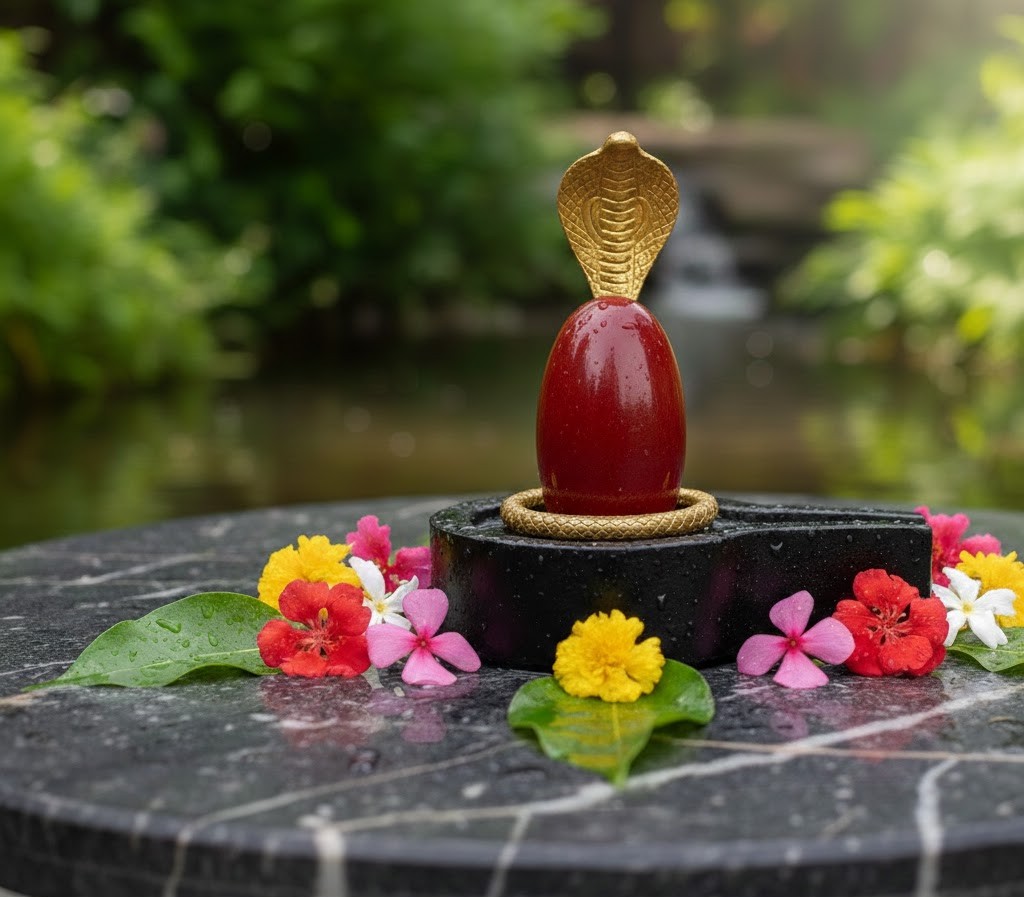 - Representation of Shakti (Feminine Energy): In some interpretations, the red color or red markings on a Narmadeshwar Shivling are believed to represent the feminine energy (Shakti) within the Shivling, complementing the masculine energy (Linga) that the stone embodies. This signifies the union of Shiva and Shakti, the cosmic creative and destructive forces, leading to balance and harmony.