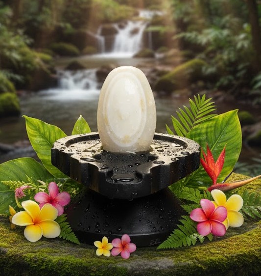 Cosmic Union: The Shivling symbolizes the union of Lord Shiva (consciousness/masculine energy) and Devi Shakti (energy/feminine energy). It represents the cosmic pillar of fire, symbolizing the divine, eternal, and boundless nature of Shiva. The smooth, elliptical shape of the Narmadeshwar Shivling naturally
