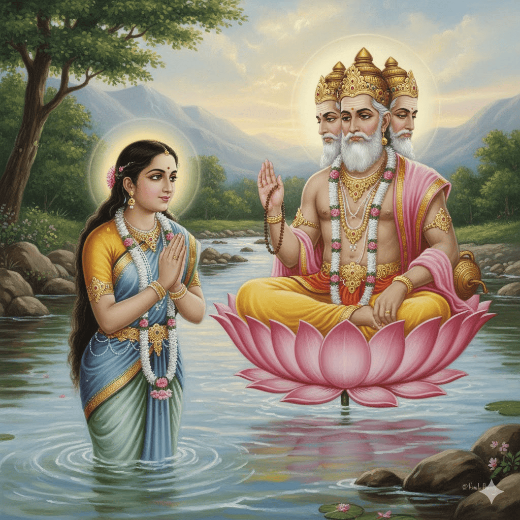 Once, Narmada ji pleased Lord Supreme Father Brahma by doing an extremely harsh penance. Brahma ji appeared and asked Narmada ji to ask for a boon.